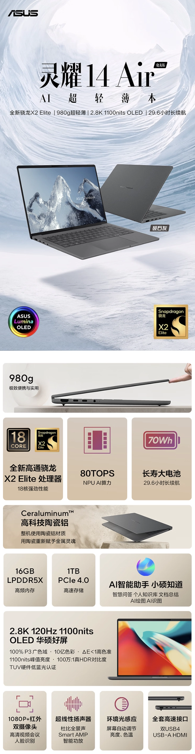 IT之家 4 月 22 日音问,华硕现已在京东上架灵耀 14 Air 高通版浮薄本,该机搭载高通骁龙 X2 Elite 惩处器,匹配 16GB RAM 和 1TB SSD开云(中国)Kaiyun·官方网站 - 登录入口,订价为 11999 元。